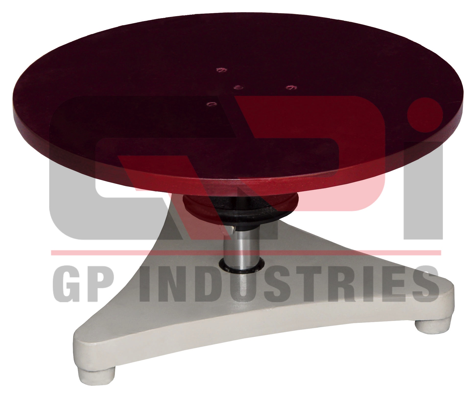 The apparatus consist of a circular wooden top 300mm diameter and 12mm thick attached to a strong ball-bearing spindle provided with a driving pulley, 80mm diameter and a support rod for mounting in a large tripod base or boss head.